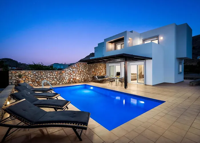 Do dyspozycji Gości jest miejsce do jedzenia i jadalnia na świeżym powietrzu z urządzeniem do parzenia kawy/herbaty. W kuchni znajdują się kuchenka mikrofalowa, czajnik elektryczny i lodówka. Najbliższe lotnisko to Rodos, położone w 55 km od willi. Na miejscu dostępny jest słoneczne patio, a w pobliżu obiektu można uprawiać tenis stołowy. Goście mogą zrelaksować się w prywatnym ogrodzie z prywatnym basenem.